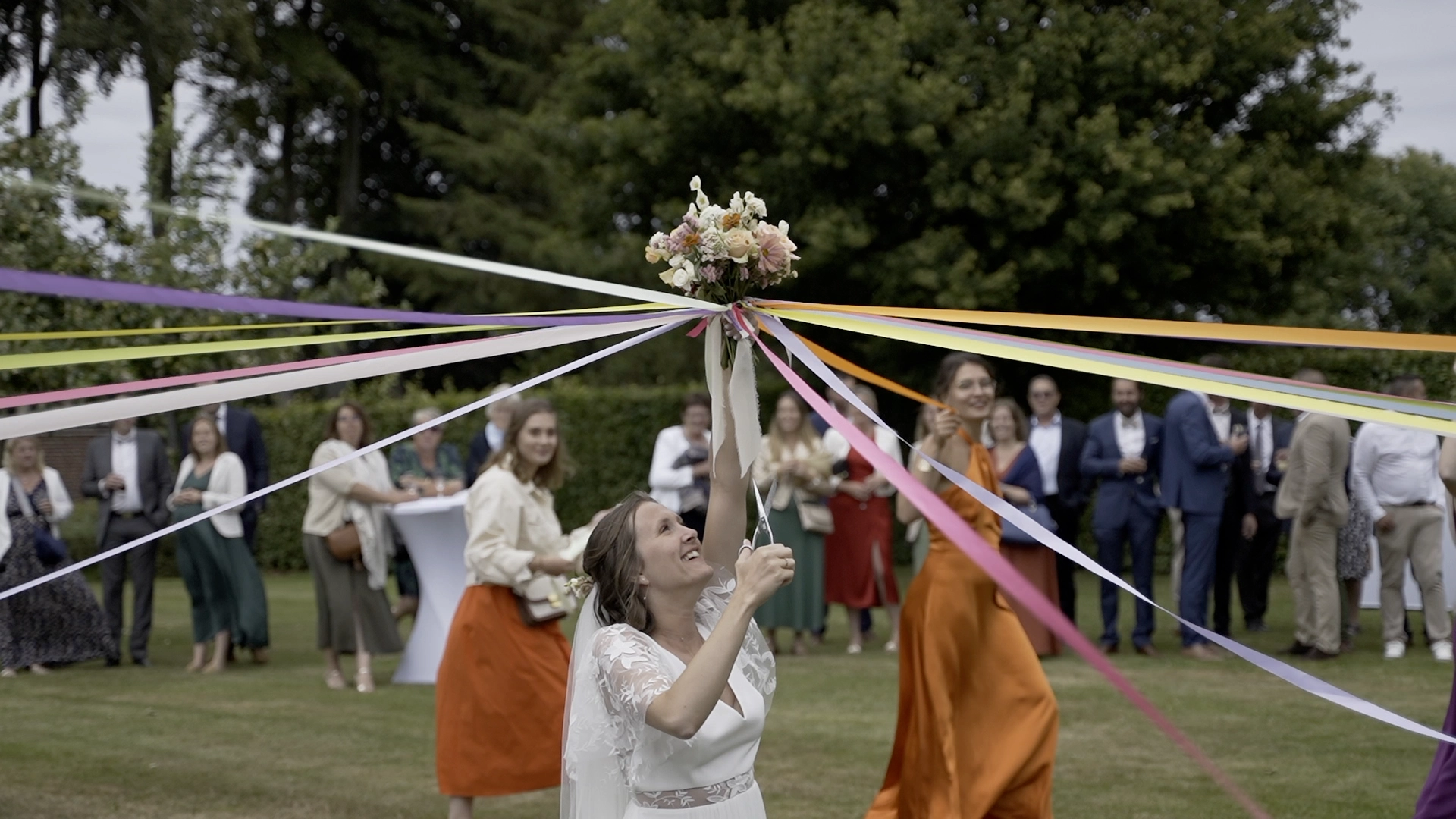 Le cocktail a été marqué par les discours émouvants de la demoiselle d’honneur et du papa de Mathieu. Sans oublier le jeu des rubans, une belle alternative au traditionnel lancer de bouquet.